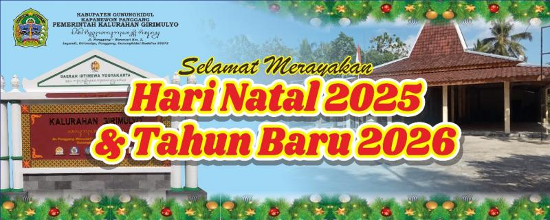 Girimulyo Sida Kamis 25 Desember 2025.Pemerintah kalurahan Girimulyo mengucapkan selamat Hari Natal kepada seluruh warga Girimulyo yang hari ini merayakan Natal semoga senantiasa diberi kebahagiaan . Dan pada hari ini Kamis dan Jumat 25 dan 26 Desember pelayanan kalurahan Girimulyo libur. Pelayanan dibuka Senin 29 Desember 2025
